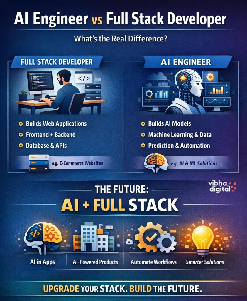 A Full Stack Developer builds complete web applications — handling everything from the user interface to backend systems and databases.